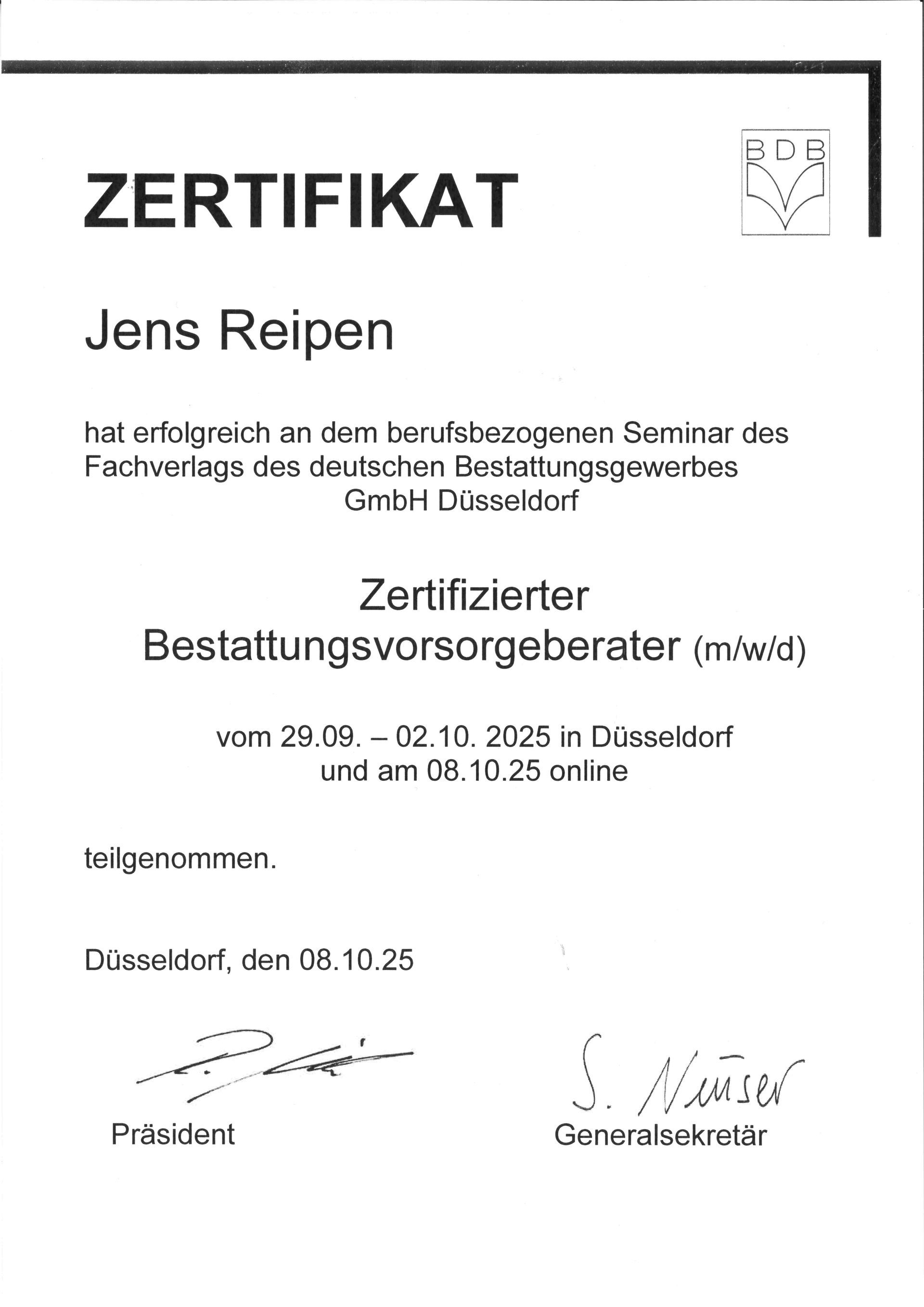Anmeldung unter info@bestattungen-reipen.de und 02165-436